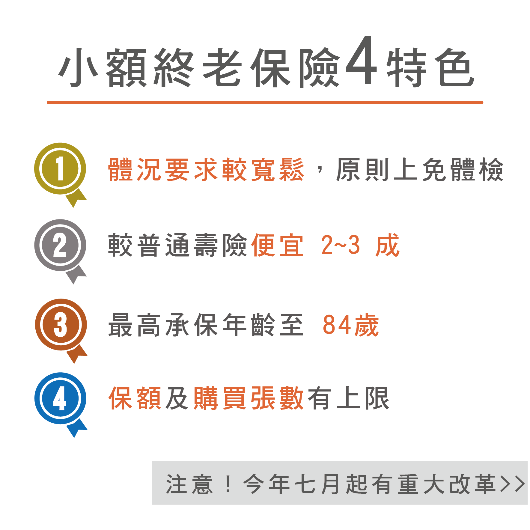 政府為了解決國人壽險保障不足的問題,推出幾乎人人都能投保的小額終老保險,而金管會也宣布將於民國 110 年 7 月起,對小額終老保險放寬額度即可保件數。