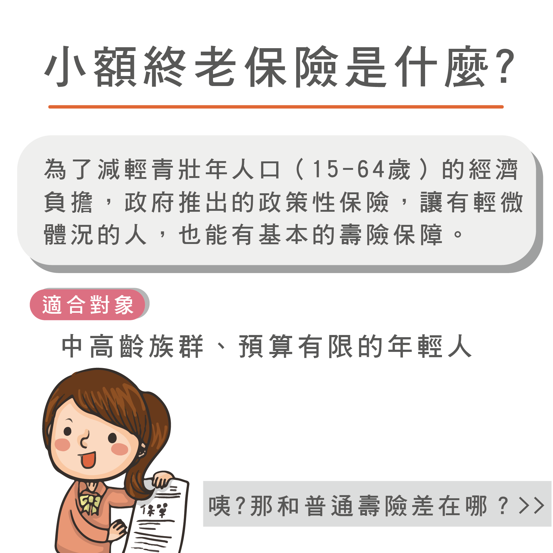 小額終老保險是因應人口老化和少子化趨勢,由政府推出的政策性壽險。