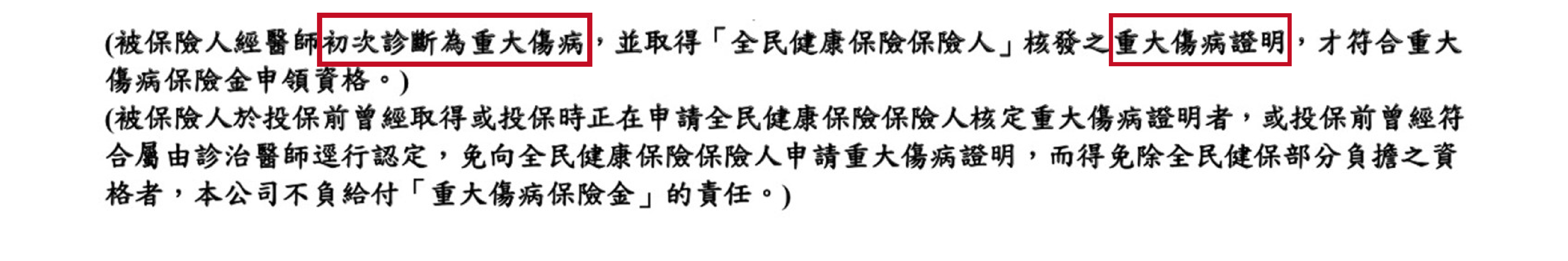首先,可領取重大傷病卡的範圍零零總總將近4百多項,表示遭遇啟動重大傷病險的狀況除了癌症之外還有許多狀況;甚至意外車禍、摔傷、嚴重的燒燙傷都會領卡,然而有許多重大傷病險條款中都有寫:只針對「初次」領取重大傷病卡做理賠 ,因爲這項條件等於一輩子只會領到一筆重大傷病保險金。
